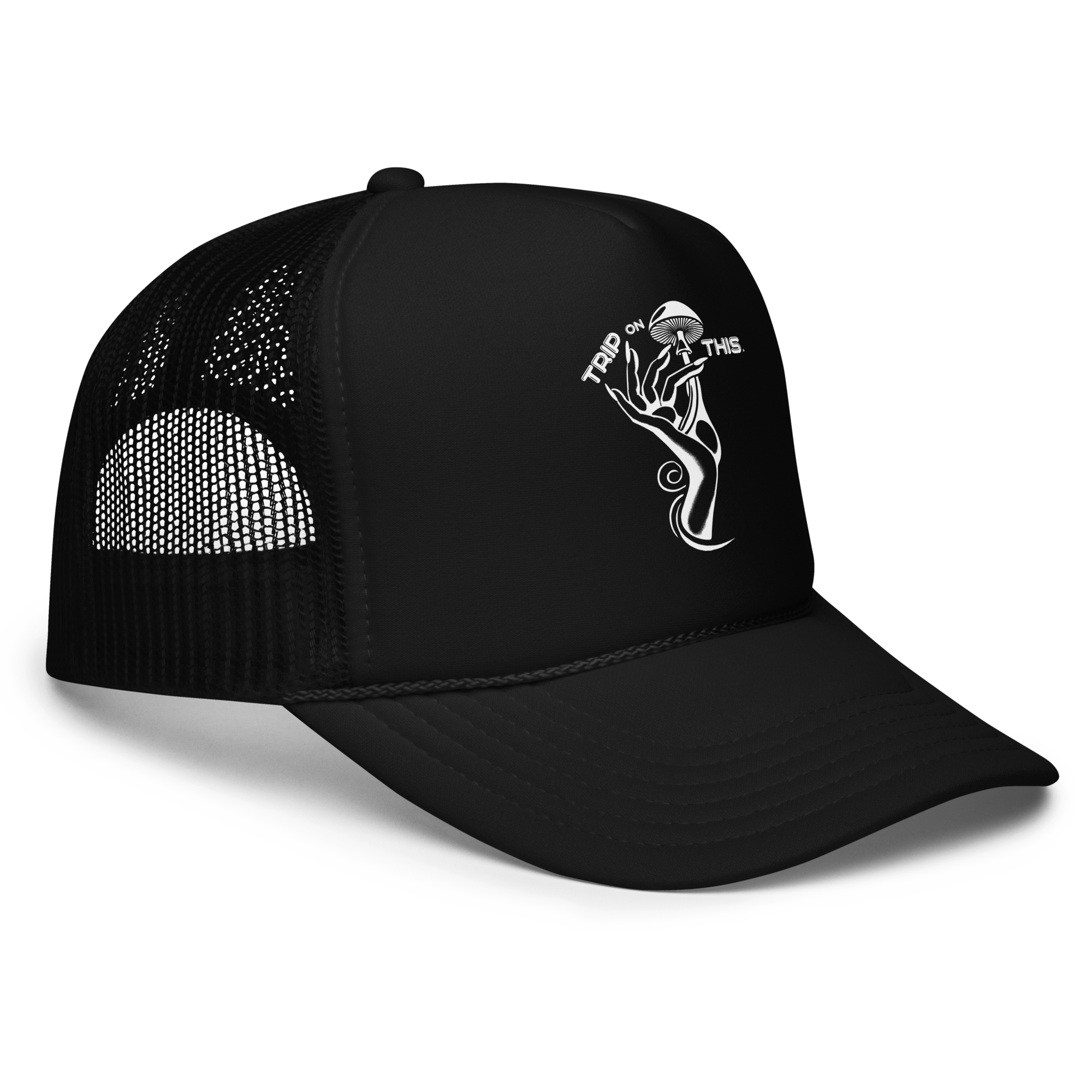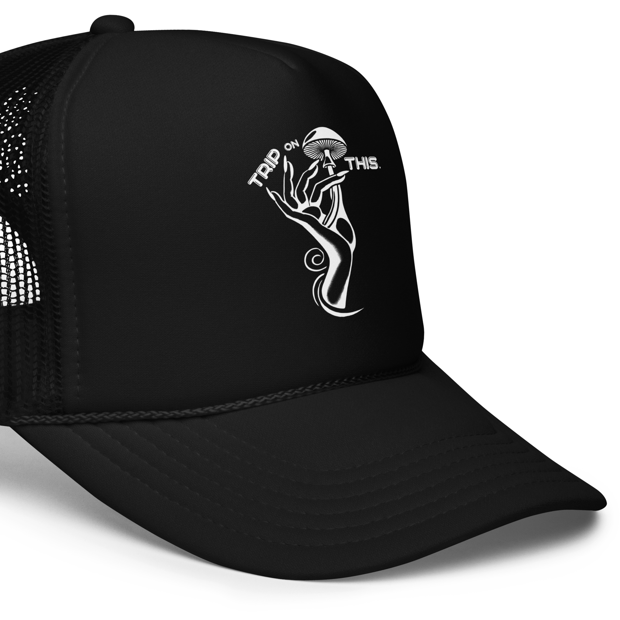 The Mushroom Muse Classic Trucker leans into simplicity: a structured front, a sleek profile and the signature Trip On This hand — subtle, modern and effortlessly cool.