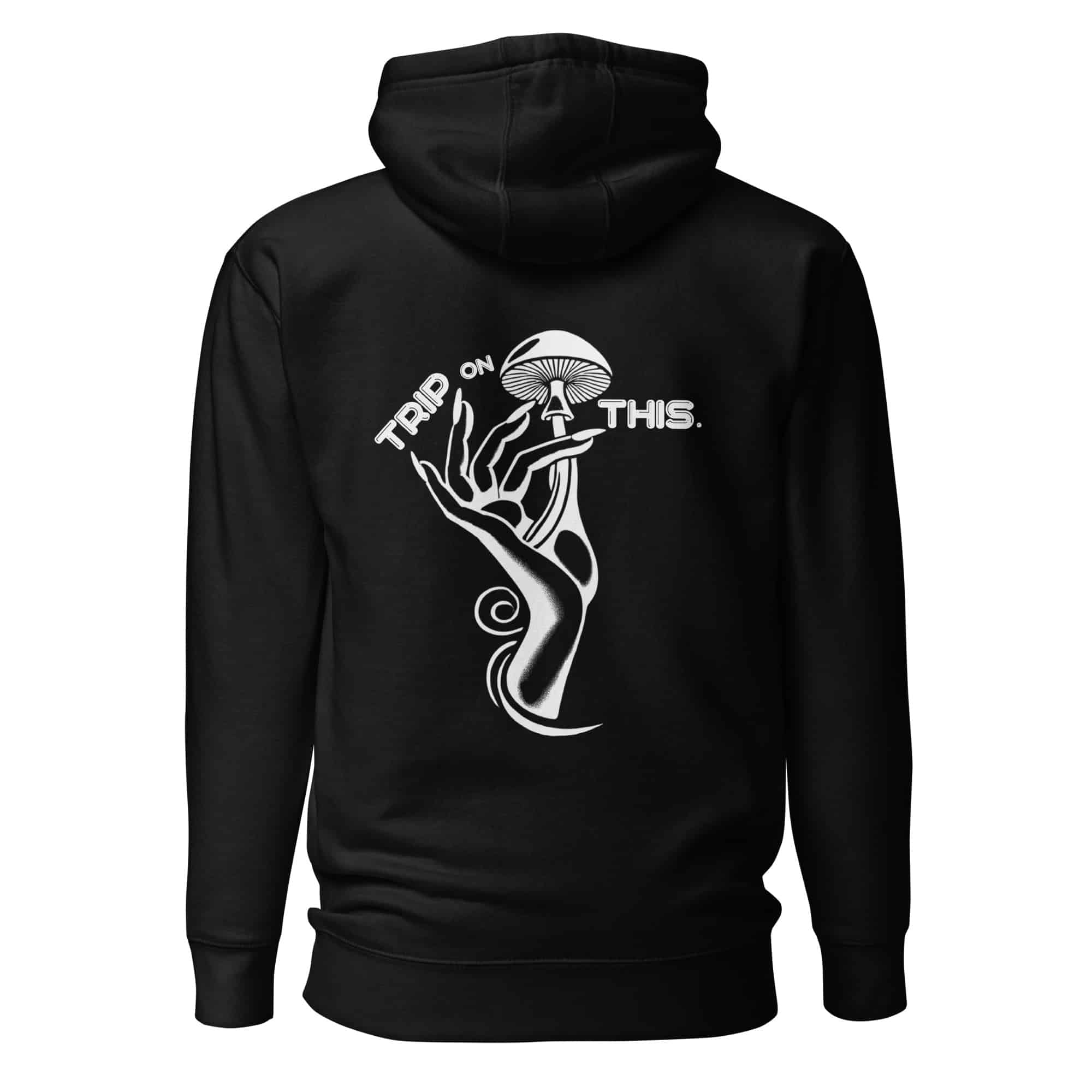 Meet the signature hoodie of the Mushroom Muse line — the one built for everyday wear and your go-to rotation. This classic fit keeps it simple: soft feel, clean silhouette and the iconic Trip On This hand design in crisp white on black.