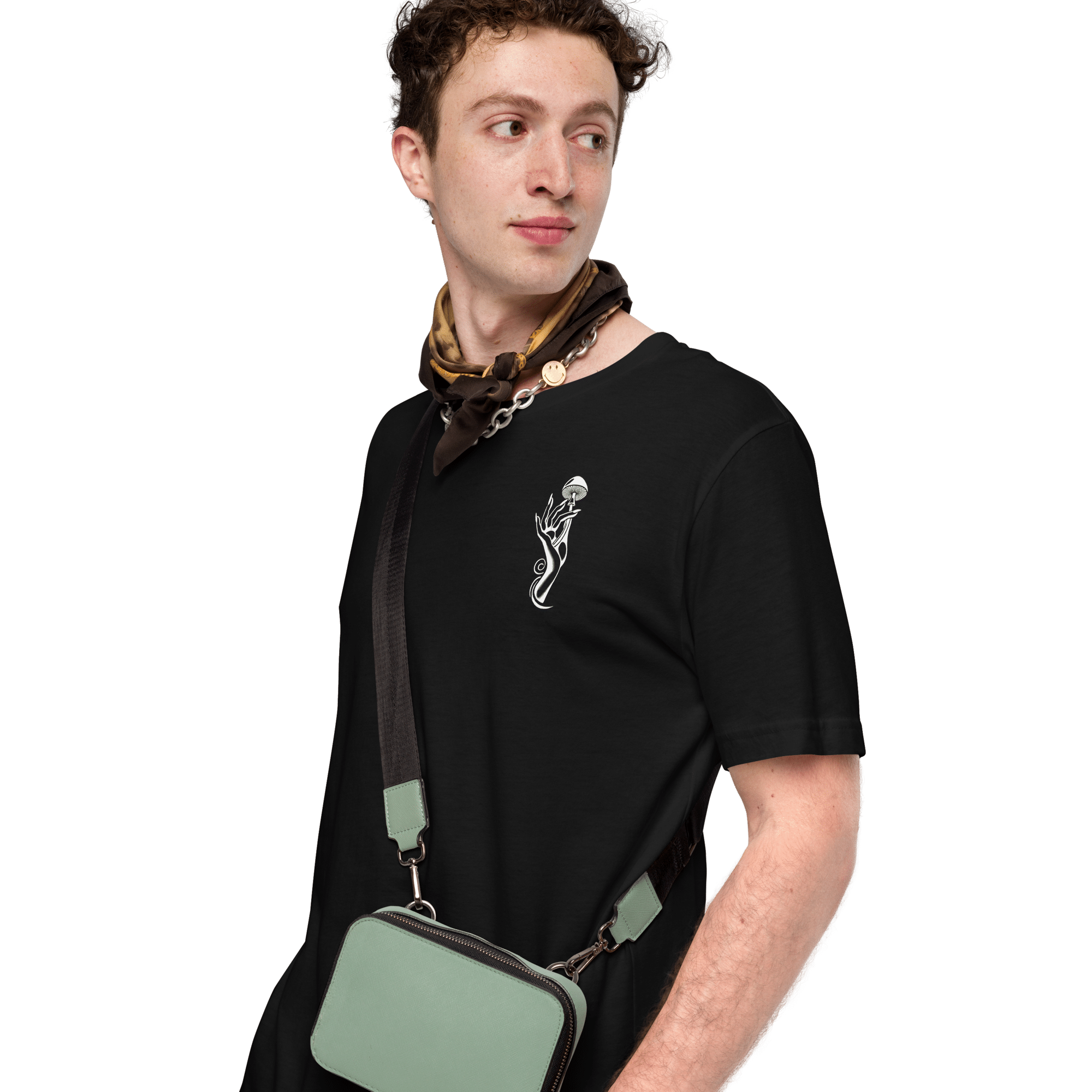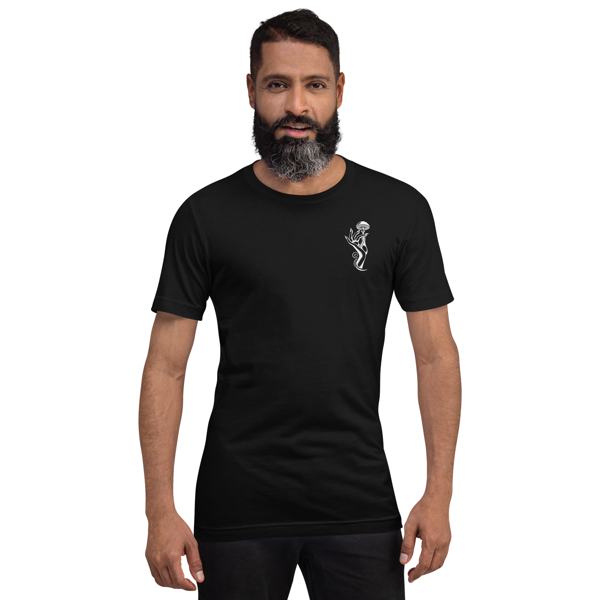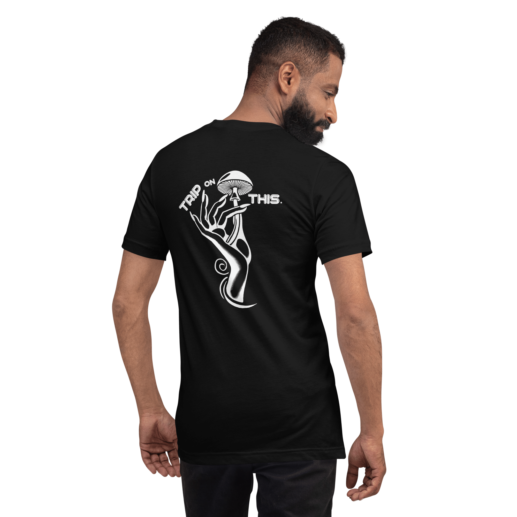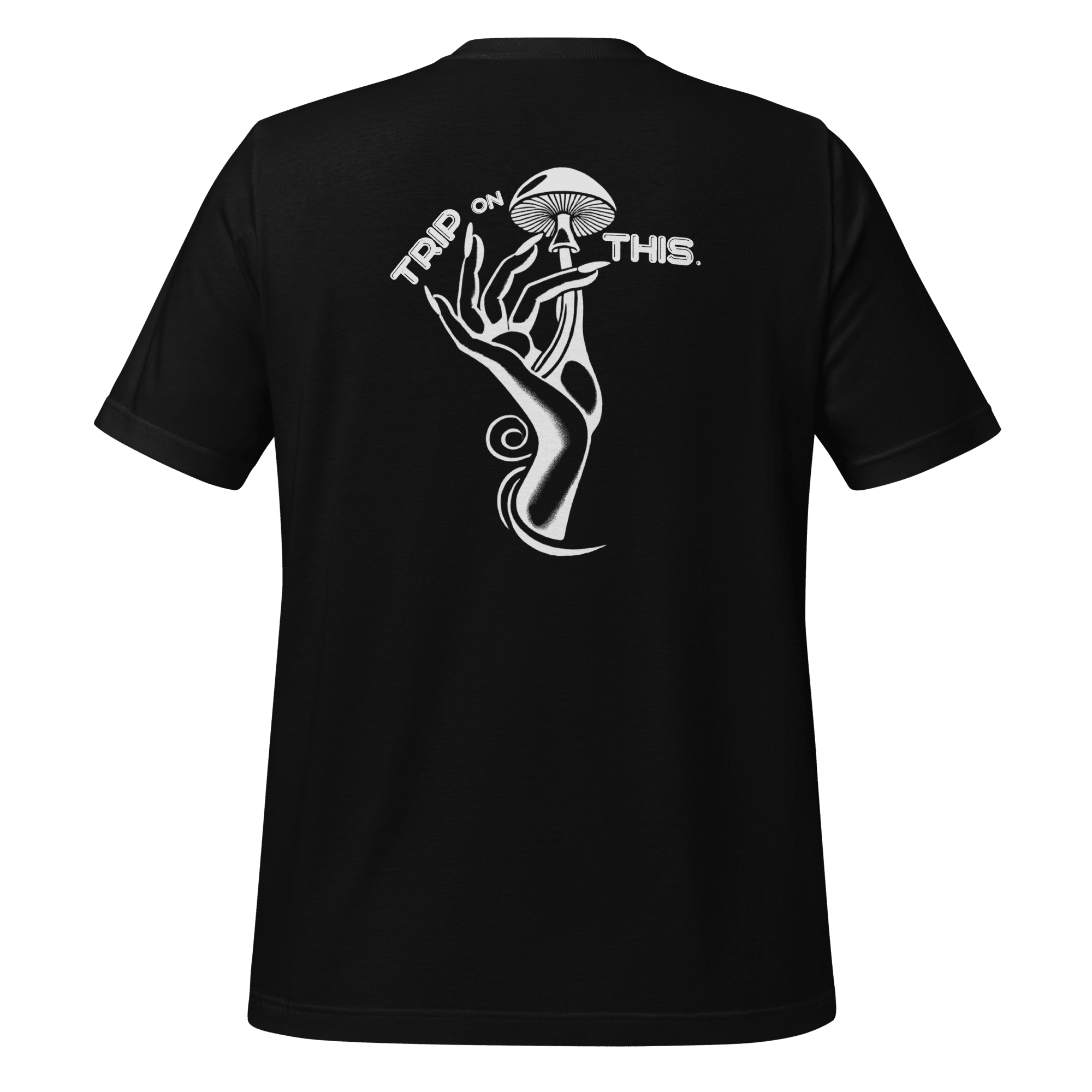 An everyday fashion staple, featuring the signature Trip On This Mushroom Muse artwork — subtle on the front, unmistakable on the back.